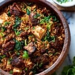 This Lamb Biryani recipe offers a fragrant and flavorful one-pot meal combining tender lamb neck marinated with garlic and ginger, fragrant spices, basmati rice, paneer, and spinach. Slow-cooked in the oven to perfection, it delivers a hearty and aromatic dish perfect for a comforting dinner served with cooling yogurt.