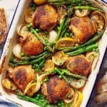 Keywords: lemon roasted chicken, spring asparagus recipe, roast chicken thighs, one-pan chicken dinner, roasted vegetables, easy spring dinner