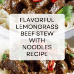 This lemongrass beef stew with noodles is a fragrant and comforting dish perfect for any day of the week. Tender cubes of beef simmer in a flavorful broth infused with lemongrass, ginger, and spices, served over wide rice noodles for a satisfying meal.