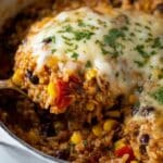 Keywords: Mexican casserole, ground beef recipe, one-pot meal, beef mince, rice casserole, easy dinner, quick Mexican dinner