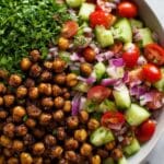 A vibrant and flavorful Middle Eastern Spiced Chickpea Salad featuring warm, spiced chickpeas tossed with fresh cucumbers, tomatoes, herbs, and a tangy lemon-sherry vinegar dressing. Perfect for a light lunch or as a side dish, this salad combines aromatic spices with crisp vegetables for a refreshing yet hearty dish.