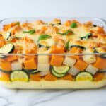 A hearty and colorful Mixed Vegetable Frittata featuring pumpkin, potato, and zucchini, combined with eggs, milk, fresh basil, and cheddar cheese. This baked dish offers a delicious and nutritious meal perfect for breakfast, brunch, or a light dinner.