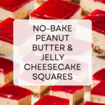 This no-bake peanut butter and jelly cheesecake squares recipe is a delightful twist on the classic sandwich. Combining a crunchy biscuit base, creamy peanut butter filling, and a vibrant raspberry jelly topping, it’s an easy dessert that’s perfect for any occasion.