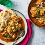 - Step 8: Spoon the spiced butter over the curry and garnish with coriander leaves, sliced red onion, and chilli. Add a drizzle of cream if desired. Serve hot with naan, pilau rice, and chutney.