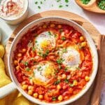 A flavorful and hearty one-pan dish featuring eggs poached in a spiced chickpea and pepper tomato sauce. This simple, wholesome recipe combines aromatic spices, tender vegetables, and creamy yogurt for a perfect breakfast or light dinner that’s easy to prepare and packed with nutrients.