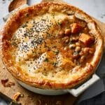 This one-pot paneer curry pie is a comforting and flavorful dish combining a rich spiced curry filling with a crisp, buttery puff pastry crust. Perfect for a satisfying dinner, it brings together creamy paneer, tender potatoes, and vibrant vegetables in a convenient casserole-style pie.