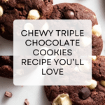Keywords: triple chocolate cookies, chewy chocolate cookies, white chocolate chips, dark chocolate, cocoa powder, homemade cookies, dessert recipe