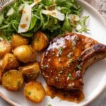 - Serve: Plate the pork chops and roasted potatoes, scraping any remaining pan juices over the pork. Garnish with parsley if desired for a fresh touch.