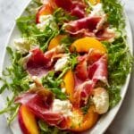 Keywords: Peach Salad, Arugula Salad, Mozzarella Salad, Prosciutto Salad, Summer Salad, Easy Salad, No-Cook Salad