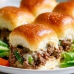 Keywords: Philly cheesesteak sliders, beef sliders, party appetizers, creamy cheesesteak, easy slider recipe