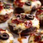 Keywords: pizza stuffed mushrooms, baked mushrooms, appetizer, Italian snack, portobello mushrooms, mozzarella stuffed mushrooms, easy party food