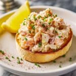 - Assemble and serve: Spoon a few generous spoonfuls of the shrimp and crab mixture onto each toasted crumpet. Garnish with extra chopped chives and a few tarragon leaves for freshness. Serve immediately with lemon wedges on the side to squeeze over the top for a bright, zesty finish.