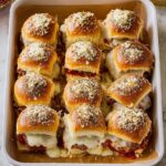 These pull-apart meatball sliders are a delightful and easy-to-make meal featuring juicy beef meatballs nestled in soft baked rolls, smothered with rich tomato sauce and melted mozzarella, topped with melted butter, oregano, and parmesan, then baked until golden and bubbly. Perfect for sharing at parties or a cozy family dinner.