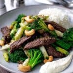 Keywords: beef and broccoli, quick beef stir-fry, one-pot meal, healthy dinner, quick dinner recipes, cashew nuts, horseradish sauce, easy beef recipe
