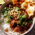 - Step 6: Serve the curry over bowls of rice with fresh naan on the side. Top with the cilantro-peanut mixture for added texture and flavor. Enjoy!