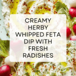 Keywords: whipped feta dip, radishes, herby dip, Mediterranean appetizer, feta and yogurt dip, za’atar, coriander seeds