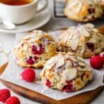 These Raspberry Almond Biscuits combine tender, flaky biscuits studded with juicy frozen raspberries and a hint of almond flavor. Topped with a delicate almond glaze and crunchy sliced almonds, they are perfect for breakfast, brunch, or an elegant snack.