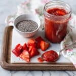 Keywords: raw strawberry jam, no-cook jam, chia seed jam, vegan jam, fresh strawberry spread, healthy strawberry jam