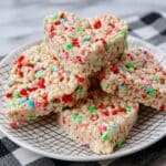 - Cut Into Hearts: Once cooled and set, use the heart-shaped cookie cutter to cut the Rice Krispie treats into festive heart shapes. Serve and enjoy your holiday treats!
