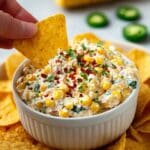 This Roasted Corn and Jalapeño Dip is a creamy and flavorful appetizer that combines the sweetness of roasted corn with the spicy kick of jalapeños. Blended with cream cheese, sour cream, and cheddar cheese, and enhanced with fresh cilantro and lime juice, this warm dip is perfect for parties and gatherings. Baked until bubbly and golden, it’s deliciously paired with tortilla chips or your favorite dippers.