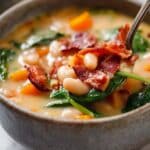This Slow Cooker Ham Bone Soup with Beans is a comforting and hearty recipe that utilizes leftover ham bone to create a rich homemade broth, combined with white beans, vegetables, and leafy spinach. Slow-cooked to develop deep flavors, it includes crispy pan-fried ham pieces for added texture, making it a perfect warming meal.