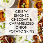These Smoked Cheddar and Caramelized Onion Potato Skins are the perfect crispy, cheesy snack or appetizer. Loaded with savory bacon, sweet caramelized onions, and topped with a tangy homemade ranch, they’re sure to impress your guests or satisfy your cravings.