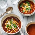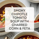 This smoky tomato, chipotle, and charred corn soup is a comforting bowl full of bold flavors and a hint of spice. It combines the sweetness of corn with a smoky kick from chipotle chili paste, making it a perfect dish for chilly evenings or when you need a cozy meal.
