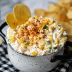 A creamy and flavorful Southwestern Corn Dip combining sweet corn, mild cheddar cheese, and a blend of spices, perfect for serving with chips as a delicious appetizer or snack.