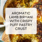 Keywords: lamb biryani, Indian rice dish, spiced lamb, puff pastry topping, saffron biryani, slow-cooked lamb, festive recipe
