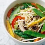 Store leftover soup in an airtight container in the refrigerator for up to 2 days. Reheat gently on the stove or in the microwave until piping hot. Noodles may absorb liquid and soften, so you might need to add a splash of stock or water when reheating.