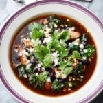 This Spiced Black Bean & Chicken Soup with Kale is a hearty and flavorful dish combining tender shredded chicken, nutritious kale, and protein-packed black beans in a mildly spiced tomato broth. Enhanced with fragrant garlic, coriander, cumin, and a hint of chili flakes, it’s both comforting and wholesome. Served with crumbled feta and warm toasted tortillas, this soup makes a perfect cozy meal for any day.