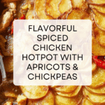 A flavorful and comforting spiced chicken hotpot featuring tender chicken thigh fillets, aubergines, chickpeas, and aromatic spices, all topped with thinly sliced potatoes baked to golden perfection.