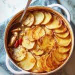 Store any leftovers in an airtight container in the refrigerator for up to 3 days. Reheat gently in the oven or microwave until piping hot. This hotpot also freezes well—defrost overnight in the fridge before reheating.