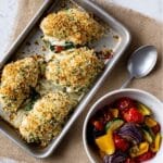Keywords: spinach ricotta chicken traybake, stuffed chicken breasts, roasted vegetables, healthy chicken dinner, easy traybake recipe