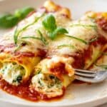 This Spinach Ricotta Cannelloni recipe combines tender pasta tubes filled with a rich mixture of ricotta, spinach, and parmesan, all baked in a flavorful homemade tomato and herb sauce. Perfect as a comforting vegetarian main dish, it features layers of cheesy goodness and fresh basil, delivering a luscious Italian classic that’s great for family dinners or special occasions.