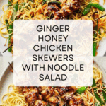 Keywords: chicken skewers, ginger chicken, honey chicken, grilled chicken, noodle salad, Asian recipe, sesame oil, lime, quick dinner