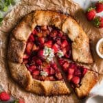 Keywords: strawberry rhubarb galette, rustic tart, fruit galette, homemade galette crust, spring dessert, berry dessert