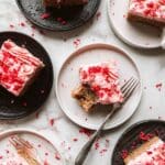 - Assemble and decorate: Transfer the frosting to a piping bag or use an offset spatula to evenly spread it over the top of the cooled cake. Finish by crushing the remaining freeze-dried strawberries and sprinkling them over the frosting for an added fruity crunch. Cut the cake into 12-16 equal squares and serve.