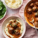 Stroganoff Meatballs with Mash and Wilted Spinach Recipe
