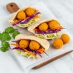 - Serve: Plate the baked sweet potato falafel with the marinated coleslaw on top or alongside, served on the toasted pita bread for a complete and satisfying meal.