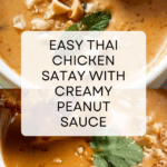 Thai Chicken Satay with Peanut Sauce is a flavorful and aromatic dish that brings the vibrant taste of Thailand to your table. Tender marinated chicken skewers are grilled to perfection and served with a rich, creamy peanut sauce that’s perfect for dipping.