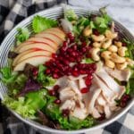 Keywords: Thanksgiving salad, fall harvest salad, turkey salad, honey crisp apple salad, pomegranate salad, healthy salad, no-cook salad, autumn salad