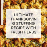 This Thanksgiving stuffing recipe is a comforting blend of crispy sourdough, aromatic herbs, and savory vegetables. It’s easy to prepare and bakes to golden perfection, making it a perfect side dish for your holiday feast.