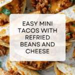 Tiny Tacos are perfect for a fun appetizer or a casual snack. These bite-sized treats combine flavorful taco meat, melted cheese, and creamy refried beans on crispy tortilla chips.