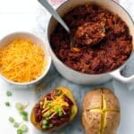 Store any leftover turkey chilli separately in an airtight container in the refrigerator for up to 3 days. Reheat gently on the stove or in the microwave. Baked potatoes are best eaten fresh but can be kept wrapped in foil in the fridge for up to 1 day; reheat in the oven to keep the skin crisp.