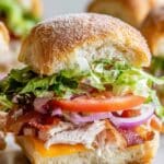 These Turkey Club Sliders are a perfect bite-sized twist on a classic sandwich. Packed with turkey, crispy bacon, fresh veggies, and melted cheese on soft Hawaiian rolls, they’re ideal for parties or a satisfying snack.