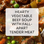 This hearty Vegetable Beef Soup features tender, fall-apart stewing beef simmered with fresh vegetables in a rich broth. Perfect for chilly days, it’s a comforting meal that’s easy to prepare and deeply satisfying.