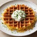- Repeat and Serve: Remove the cooked latke carefully, brush the waffle iron again with oil if needed, and repeat the process with the remaining batter. Serve the hot latkes immediately with toppings such as sour cream, fresh parsley, or any favorite condiments.