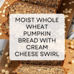 Keywords: whole wheat pumpkin bread, cream cheese filling, pumpkin bread recipe, healthy pumpkin bread, fall baking, yogurt baking chips, pecan pumpkin bread